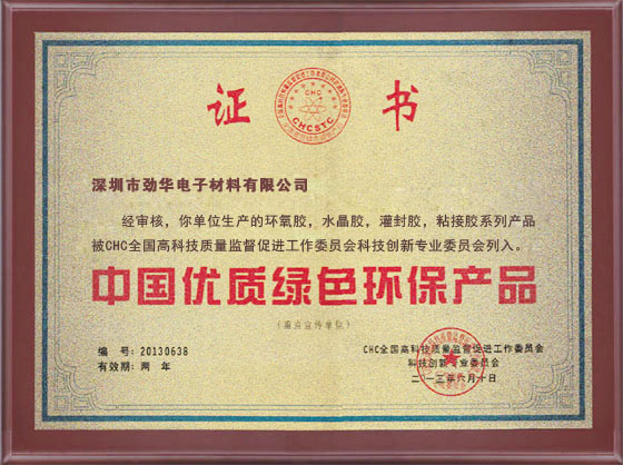優(yōu)質(zhì)綠色環(huán)保產(chǎn)品證書